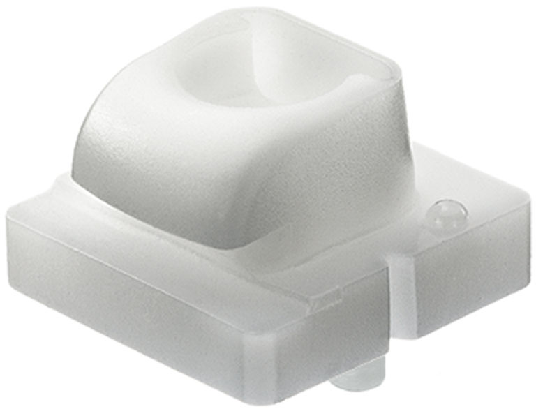 Demontage: Sollte die Aluminiumschale demontiert werden müssen, können die Noppen-Drehklipshalter nach wie vor leicht gedreht werden. Die Positioniernoppen werden dabei über Sollbruchstellen von der Grundplatte abgetrennt. Diese Sollbruchstellen liegen vertieft in der Grundplatte, sodass keine Bruchsplitter beim Abtrennen unter der Grundplatte vorstehen können.